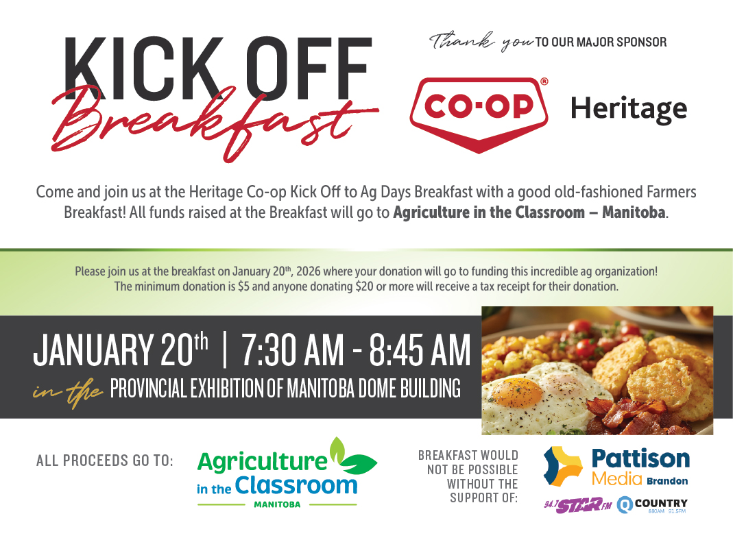 Please join us on January 20th, 2026 as we kick off the Manitoba Ag Days Show with a Made in Manitoba Breakfast at the Provincial Exhibition of Manitoba Historic Dome Building!!! It is the perfect way to connect with your friends, neighbours and the industry all while raising money for a very important cause – Ag In The Classroom- Manitoba.